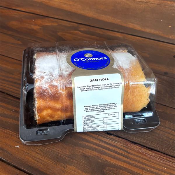 A traditional sponge recipe using eggs, sugar, flour, vanilla essence finished with jam in the centre.