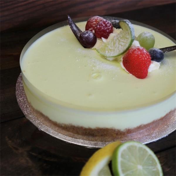 Cream cheese (dairy), icing sugar, cream (dairy), digestive biscuit (wheat flour, calcium carbonate, iron nicotinic acid B3, Thiamin B1, vegetable oil (Sunflower, palm, rapeseed), sugar, wholemeal flour (wheat), (raising agents:- (sodium bicarbonate, ammonium bicarbonate, tartaric acid, disodium disphospahte, malic acid), partially inverted sugar, syrup, salt, dried whey (dairy), driedmalt extract from barley, vegetable oil (palm, rapeseed)), sugar, vegetable margerine (palm oil, rapeseed oil), lemon jelly (glucose-fructose syrup, sugar solution, gelatine, lemon juice from concentrate, citric acid, acidity regulator, (sodium citrate) flavouring, acetic acid, colours (curcumin, beta carotene)), lime flavoured jelly (glucose-fructose syrup, water, sugar, gelatine (from pork), citric acid, acidity regulator(sodium citrates), acetic acid (preservative), flavouring, concentrated lime juice, colours (curcumin, copper chlorophyllin), water, lime juice (water, concentrated lime juice, lime oil, preservative (potassium metabisulphite)), apricot jam (contains sulphur dioxide), fresh fruit.